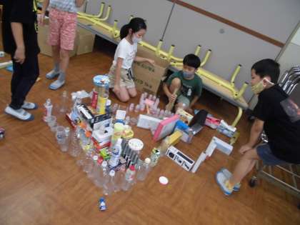 たくさん集まった材料で,活動しました。積んだり,並べたり,転がしたり…といろいろな活動の仕方を工夫しながら取り組むことができました。