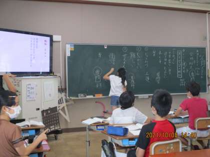 今までに習った漢字の中から,複雑な形や見慣れない形の漢字は,どのような点に注意したらよいのか,みんなで話し合いました。「上達」の「達」や「専門」の「専」のように,横画の数や点のあるなしなど,注意しなければならない点がたくさん見つかりました。これから,気を付けて書けるようになるといいですね。