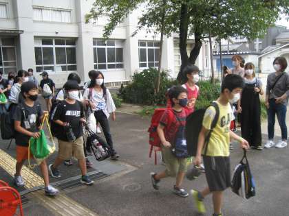 天気がやや心配ですが,みんな元気に出発する様子が見られました。