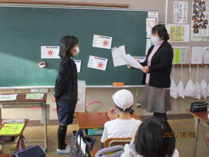 先日行われた東寺写生会において優秀な作品として,4年生の二人が表彰されました。朝の会で校長先生から直接賞状を渡していただきました。いろいろな行事に参加することは大切なことですね。