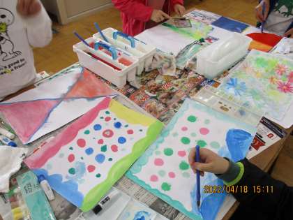 今まで学んだ技法を使って,思い思いに「自分の心の模様」を描きました。
