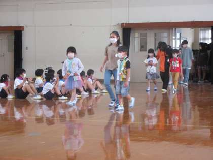 5月13日(金)の5時間目に,1年生を迎える会を行いました。児童会の司会・進行で2〜6年生が,学校のルールや行事などを,寸劇やダンスなどを交えて1年生に発表しました。