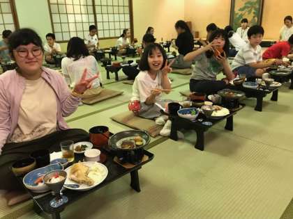 豪華な夕食です。みんな「おいしいおいしい」とモリモリいただいていました。
