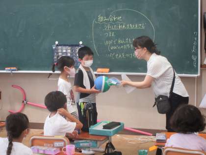 7月6日に,PTAの実行委員の皆様からボールの贈呈式がありました。PTA実行委員の皆様が,教室をまわってくださって,各クラス,ライトドッチボール2つをいただきました。子どもたちはとてもうれしそうでした。これから,大事に使っていきたいと思います。