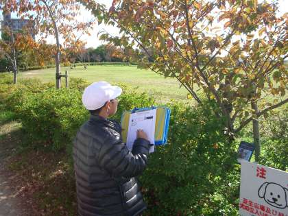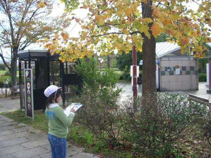 11月21日(月),3年生が総合的な学習の時間に,梅小路公園の樹木の観察をしました。春から同じ木を観察しています。秋になってどう変わったのでしょうか。