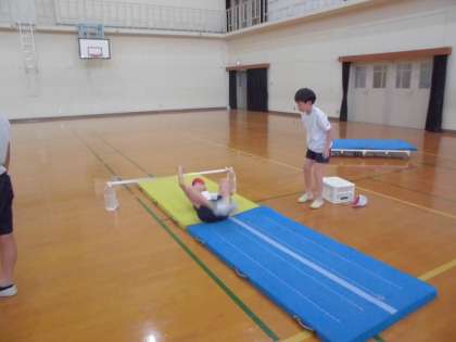 体育の学習では,マット運動に取り組んでいます。今できる技を,いかに美しく回れるようにするかというめあてと,さらに挑戦したい技についてどうすればできるようになるのかというめあてをもって頑張っています。互いにアドバイスし合いながら,上手になっていくといいなと思います。