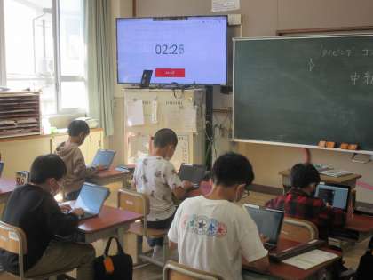 11月8日(火)の中間休みにタイピング大会を行いました。事前にエントリーしたグループで、タイピングの腕を競い合いました。5分間という短い間でしたが、みんなとても集中して行っていました。