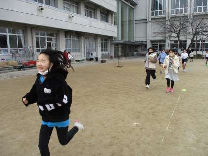 中間休みに「かけ足タイム」をしています。5分間自分のペースで運動場を走ります。2学期に行った「朝マラソン」を思い出し、しっかり走りきってほしいと思います。