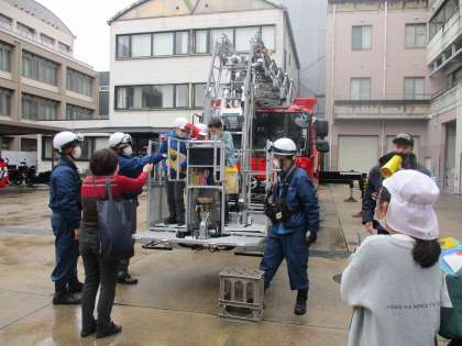 はしごは35メートルもの高さまで伸びる様子をみて子どもたちはとても驚いていました。