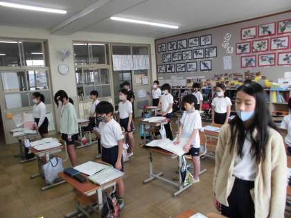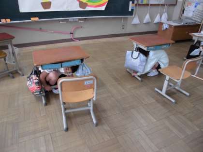 自分の身を守ることの大切さを学ぶため,シェイクアウト訓練を行いました。これまでの避難訓練とはちがい,いつ起こるかわからないという想定で行ったので,子どもたちは様々な場所でそれぞれがとるべき行動を考えて避難訓練にのぞみました。頭を隠したり,窓から離れたい,しっかりと考えて行動することができました。最後は教室で振りかえってから,黙祷して,自然災害の恐ろしさについてもしっかりと考えることができました。