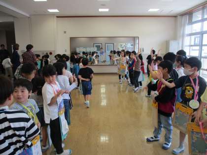 5月1日に、1年生との交流の2回目、学校探検にいきました。
