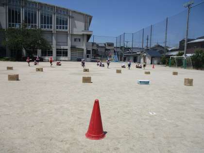 5月の気持ちいい青空のもと、元気いっぱい学習しています。