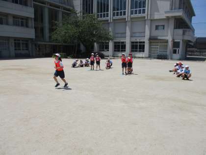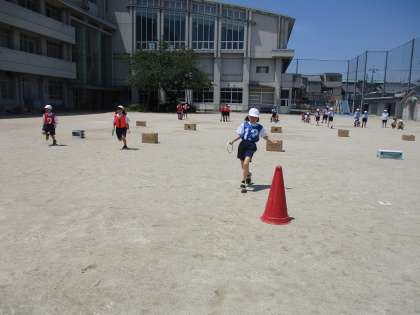 2年生の体育科の学習で、リレー遊びをしています。