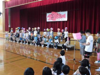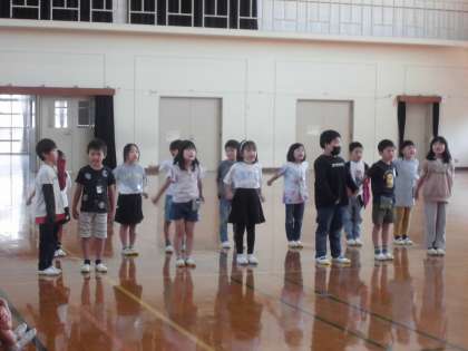1年生を迎える会がありました。2年生は、1年生へ王冠のプレゼントと「ともだちいいね」の歌のプレゼントをしました。可愛い振付けは、子どもたちが考え、お祝いのメッセージも子どもたちの言葉で作りました。