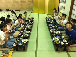 夕食を食べている様子です。みんなおいしいといって食べています!