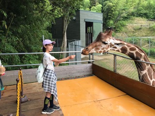 キリンやゾウにえさやりしたり、動物とのふれあいを楽しみました。キリンの餌やりでは、顔の近くで長い舌にビックリ!の子どもたちでした。