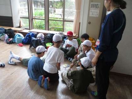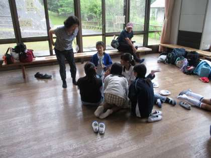 宿泊棟のイーティングホールでトランプやウノをしています。