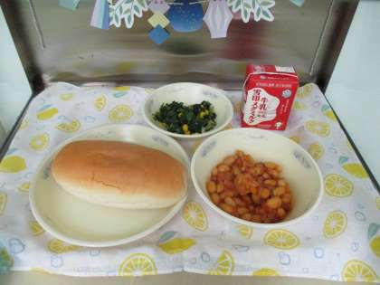 『大豆と鶏肉のトマト煮』は,よく噛んで食べる献立の一つです。大豆の甘みとトマトのうま味を味わいました。