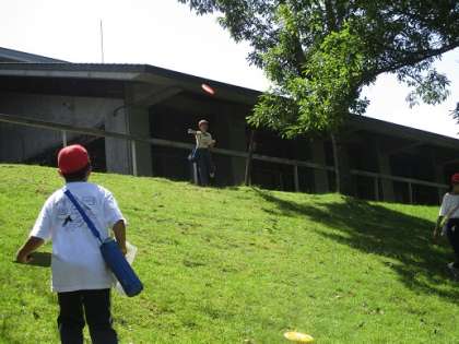 傾斜をうまく利用してディスクを投げるのも技術の1つですね。