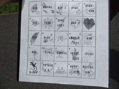 「ネイチャービンゴ」は山の家の敷地内を散策しながらビンゴを完成させるものです。