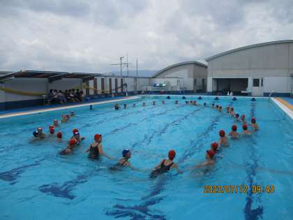 6年間の水泳学習もついに最後を迎えました。なかなか実感はわきませんでしたが,初めて泳いだころのことを思うと,本当にそれぞれの力が伸びたことを実感することができたと思います。多くの子が,目標としていた25mを泳ぎ切ることができるようになりました。この日は最終回ということで,これまでつけた力を活かし,みんなで手をつないで円を作って浮いたり,力を合わせてリレーをしたり,楽しい思い出もできました。