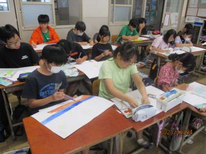 今年は「発明家になった女の子 マッティ」という実話である絵本をもとにして、お話の絵を描いています。実話ではありますが、お話を聞いて思い描いたことを自由に想像を膨らませて描くことを大切にしています。これまで学んできた技法をいろいろと使いながら、6年間で一番自信のある絵が描けるようにとみんな一生懸命です。