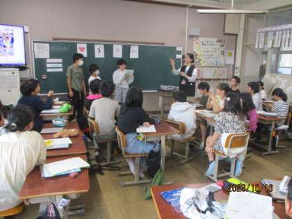 ”He is famous. She is great"の学習では、先生に好きなことや欲しいものなどについてインタビューをして、クイズ大会をする予定をしています。その活動につながるようにと、この日はグループごとに、私はだれでしょうクイズをして、好きなスポーツや欲しいものを尋ねたり答えたりする言い方の練習をしました。クイズ大会が楽しみですね。