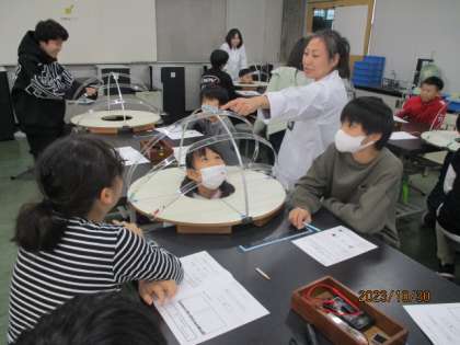 科学センター学習では、普段学校で使えないようなたくさんの実験器具を使って、少し発展的な内容にまで踏み込んで学習をすることができます。今回は、地学の「ソーラーパネル」についての学習でしたが、実験しながらどんな季節のどんな時間が一番太陽の光を集めて発電することができるのかをたしかめたり、夏が暑くなる理由について地球儀などを使いながら考えたりすることができました。