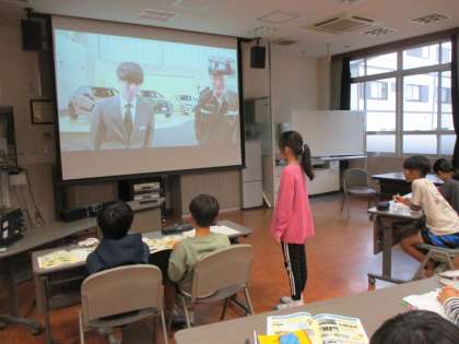 社会科「自動車をつくる工場」の学習で、トヨタの自動車工場とリモートをつなぎ、工場見学をしました。見学の途中でクイズを出してくださったり、トヨタの方に分からないことを直接質問することができたりして、子どもたちも意欲的に学習に取り組むことができました。
