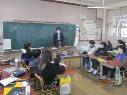 卒業まであとわずか。お世話になった先生方から、いろいろなお話を聞く特別道徳の授業をしていただきました。