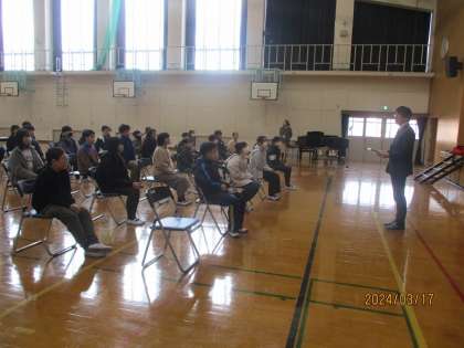 卒業式の練習に励んでいます。校長先生や教頭先生にもご指導いただき、石田先生には歌のご指導もしていただきました。たくさんの人たちに見守られ、素敵な式を迎える準備が進んでいます。