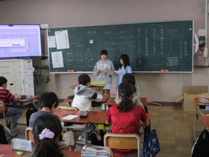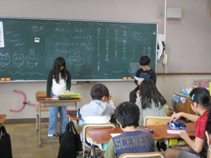 学級活動の時間に、友達のことについて紹介する他己紹介をしました。紹介する友達の良いところと好きなものを紹介しました。好きなものはクイズ形式にして紹介している子が多く、好きな物を友達によく知られている人は、答えがすぐに分からないように「好きな動物の第3位は何でしょう?」など、工夫して問題を作っていました。友達の意外なところも知れるよい機会となりました。
