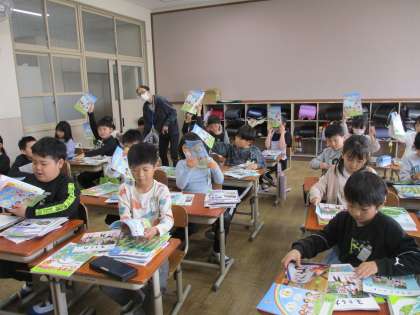新しい教科書ももらいました。3年生は多くの人が、自分で名前を書きました。全部で12冊。学習が楽しみです。