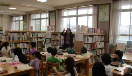 図書室にある本は、種類に分けれて置かれていることを教えてもらったり、読書ノートに今年の読書のめあてを書いたりしました。
