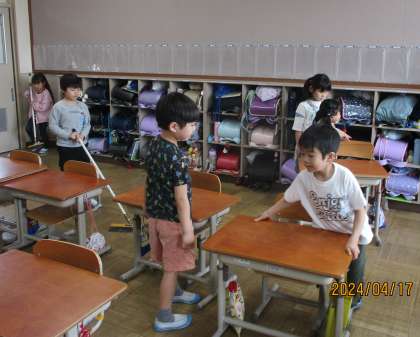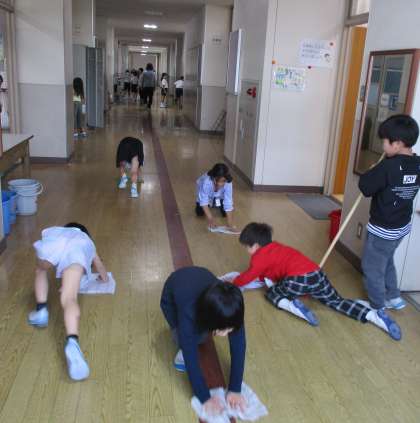 そうじの時間になると、自分のそうじ場所を確認して、すばやく開始する素敵な姿が見られます。2年生では、図書室やかがやきルームなど特別教室の掃除も任されました。