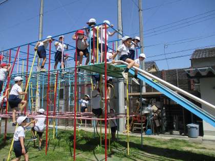 これから先生の見守りのもと、安全に遊べたら、5月には自由に遊具で遊べることにしたいと思います。
