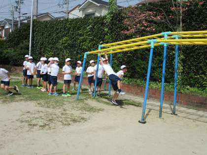 三点指示で遊具をしっかりにぎって昇り降りすること。