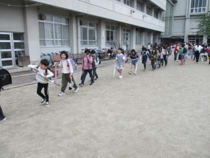 また、下校時には地域の方が新たに整備していただいた「こども110番の家」を確認しながら歩きました。