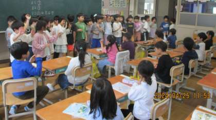 2年 1年生の教室へ