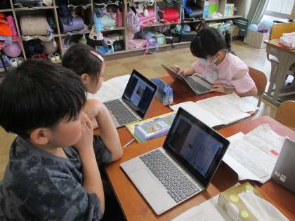 理科の学習や社会の学習で、タブレット端末を使って学習する機会が増えました。