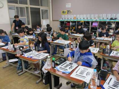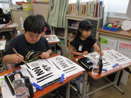 初めて書道セットを使って学習をしました。