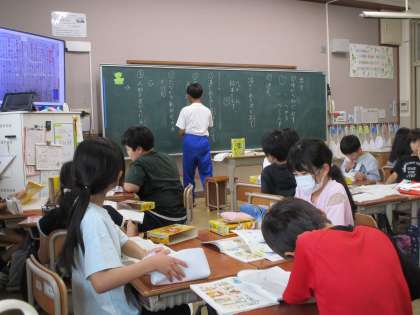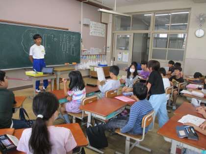 日替わりでお兄さん先生が3年生の教室に入って、授業の様子をみてくれたり、困ったことがあったら教えてくれたり、一緒に遊んだり、給食を食べたり、掃除をしたりしています。