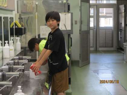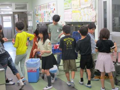 日替わりで給食室の立ち当番を務めてくれています。