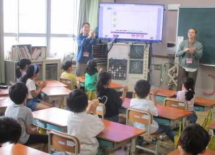ALTの先生も今日は一緒に学習できたので、子どもたちは大喜びでした。
