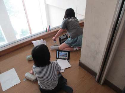 図工の時間に、端末のアプリを使って、こまどり動画を作りました。1枚写真を取ったら少しだけ物の位置をずらしてまた写真を撮ります。何枚も取って再生すると、動かないものも動いているように見えます。一つの短いお話になるように構成を工夫する子もいました。完成が楽しみです。