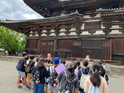 東寺の中には国宝や重要文化財がたくさん残されており、間近で見ることができました。学習の最後には、東寺についてたくさん質問する姿がありました。