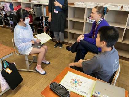外国語では、ALTの先生に日本の行事を伝えました。何度も発表の練習をしていたこともあり、すらすらと外国語が言えるようになっています。