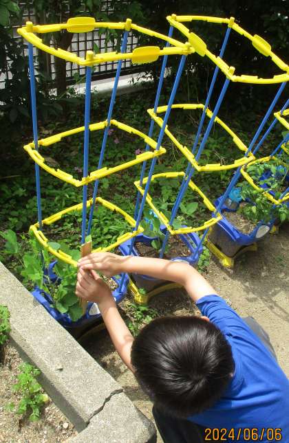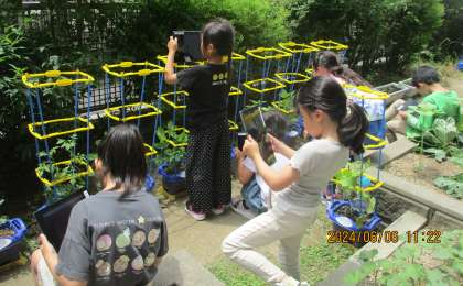 「前よりも、せが高くなってた。」「花がさいていた。」「みどり色の実ができた。」など、うれしそうに話す姿もありました。野菜によって成長のスピードは違います。これからもしっかり水やりなどお世話を頑張りましょう!