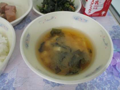 今日は【みょうが】が入ったおみそ汁でした。【みょうが】は生姜の仲間で,夏においしい野菜です。風邪や病気から体を守る「ビタミンC」を多く含んでいます。花が咲く前の蕾の部分を食べています。【みょうが】の爽やかな香りと,シャキシャキとした食感を感じながら食べました。