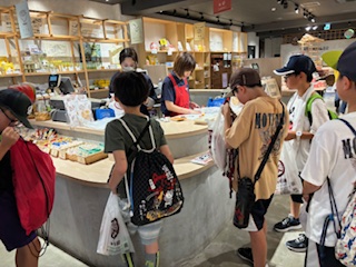 お土産を購入しています。家族のことを思って,工夫して買い物しているようです。